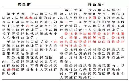 ?對(duì)受委托組織應(yīng)符合的條件作了修改:刪去了“事業(yè)組織”;受委托組織的工作人員也應(yīng)取得行政執(zhí)法資格。
