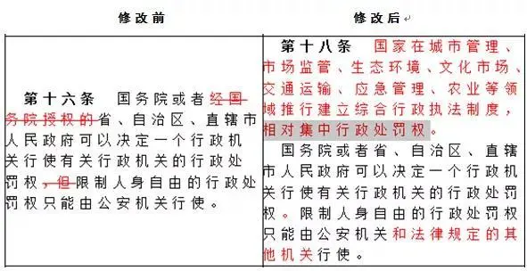 ?明確了相對(duì)集中行使行政處罰權(quán)的領(lǐng)域,在行政處罰法中確認(rèn)了多年來(lái)綜合執(zhí)法制度改革的成果;決定行政機(jī)關(guān)行使行政處罰權(quán)的機(jī)構(gòu)刪除了“經(jīng)國(guó)務(wù)院授權(quán)的”;增加了限制人身自由的行政處罰權(quán)的行使機(jī)關(guān)——法律規(guī)定的其他機(jī)關(guān)。