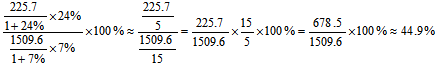 【解析】 45%。本題當(dāng)中部分增長(zhǎng)量既是第一產(chǎn)業(yè)增加值的增長(zhǎng)量