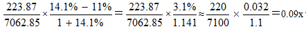 根據(jù)“三步走”解題過(guò)程如下:由材料可知,2015年一季度,該省園區(qū)企業(yè)上繳稅金223.87億元,同比增長(zhǎng)14.1%,主營(yíng)業(yè)務(wù)收入7062.85億元,同比增長(zhǎng)11%,故第一步: