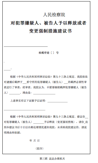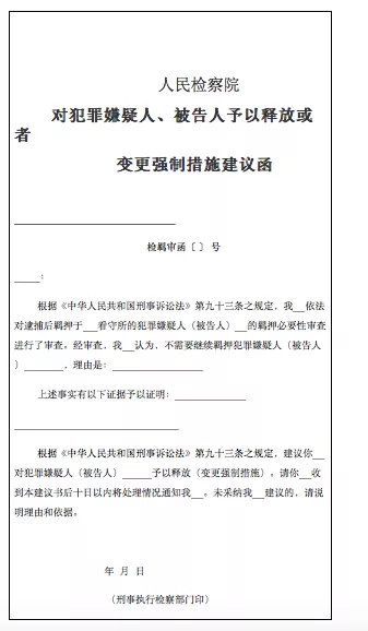新《人民檢察院刑事訴訟規(guī)則》第五百七十五條規(guī)定:“負責捕訴的部門依法對偵查和審判階段的羈押必要性進行審查。經審查認為不需要繼續(xù)羈押的,應當建議公安機關或者人民法院釋放犯罪嫌疑人、被告人或者變更強制措施。審查起訴階段,負責捕訴的部門經審查認為不需要繼續(xù)羈押的,應當直接釋放犯罪嫌疑人或者變更強制措施。負責刑事執(zhí)行檢察的部門收到有關材料或者發(fā)現不需要繼續(xù)羈押的,應當及時將有關材料和意見移送負責捕訴的部門?!?/span>