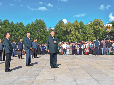 22日下午,習(xí)近平在布達拉宮廣場考察時,向游客