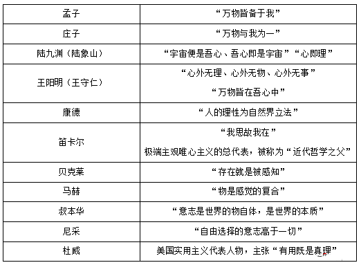 在我們事業(yè)單位考試中,常常會涉及一類題目,給出一些哲學家的觀點,讓我們判斷該觀點屬于主觀唯心主義還是客觀唯心主義,有的時候無從下手。因此,在這里對兩種唯心論代表進行歸納總結,為做好這一類哲學題目錦上添花。