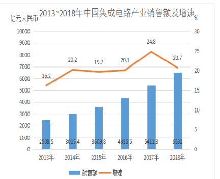 128.2013~2018年間中國集成電路產業(yè)銷售額增速最高的年份,當年集成電路進口金額同比約增加:( )