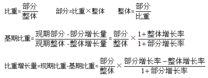 當(dāng)比較現(xiàn)期比重和基期比重時,只需比較部分增長率和整體增長率之間的大小關(guān)系。