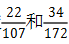 。【解析】為了方便描述,我們把分子分母都小的這個分數(shù)叫做分數(shù)1,分子分母都大的分數(shù)叫做分數(shù)2。在分數(shù)1中,107是22的4倍多,在分數(shù)2中,172是34的5倍多,如果我們將分數(shù)1的分子分母同時縮小22倍,那分數(shù)1變?yōu)?/span>