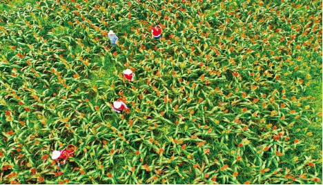 浙江省淳安縣創(chuàng)新探索“大下姜”鄉(xiāng)村振興聯(lián)合體共富模式,走出一條先富幫后富、區(qū)域共同富裕之路。圖為淳安縣楓樹(shù)嶺鎮(zhèn)上江村按照“大下姜”農(nóng)業(yè)產(chǎn)業(yè)發(fā)展要求,打造以紅高粱為主題的精品農(nóng)業(yè)園。 浙江日?qǐng)?bào)社供圖