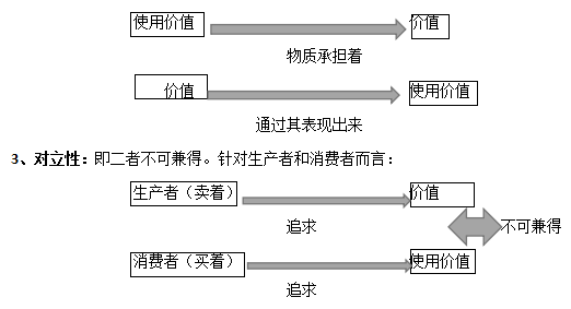 2、統(tǒng)一性:針對(duì)商品而言,任何一個(gè)商品必須同時(shí)具備使用價(jià)值和價(jià)值兩個(gè)因素