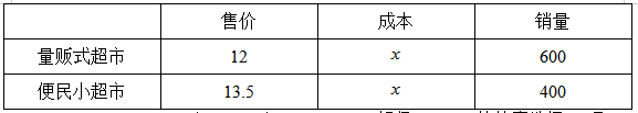 某集團旗下有量販式超市和便民小超市兩種門店,集團統(tǒng)一采購的A商品在量販式超市和便民小超市的單價售價分別為12元和13.5元。4月A商品在兩種門店分別售出了600件和400件,共獲利5000元,問:該商品進價為多少元?( )