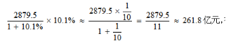 在此計算過程中,我們將增長率變小,則計算結(jié)果也偏小,因此選擇稍大的264.2億元,即B項。