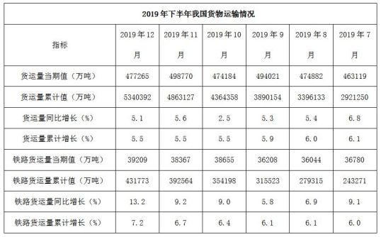 問題:2019年7月,我國鐵路貨運量同比增長了( )