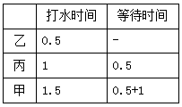 【例題1】有甲、乙、丙三位同學(xué)每人拿一只桶同時(shí)到一個(gè)公用的水龍頭去灌水,灌水所需的時(shí)間分別為1.5分鐘、0.5分鐘和1分鐘。若只能逐個(gè)地灌水,未輪到的同學(xué)需等待,灌完的同學(xué)立即離開(kāi),那么這三位同學(xué)花費(fèi)的時(shí)間(包括等待時(shí)間)總和最少是( )。
