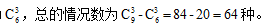 的相反情況為白球數(shù)<1,即白球數(shù)為0??偟那闆r數(shù)為從9個(gè)球中選3個(gè)球記為