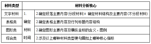 1.定位數(shù)據(jù):有些小伙伴認(rèn)為看材料麻煩且看不懂不如直接做題再去找數(shù)據(jù)更方便,實則不然,沒有梳理好材料就做題只會讓自己不斷徘徊在題目與數(shù)據(jù)之間無法縷清思路,正確的做題方式應(yīng)該是先梳理材料,但梳理材料并不是逐字逐句的閱讀,而是找到并勾畫關(guān)鍵的點:一是確定材料的時間,二是段落的主要指標(biāo)。確定好這兩點后再去看問題,就能夠快速的定位該題目數(shù)據(jù)所在的段落位置,不同類型材料注意的關(guān)鍵點不同。如下表所示: