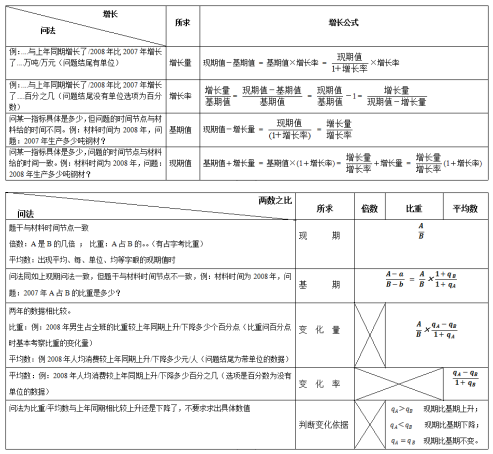 2.列出算式:有很多小伙伴不理解題目,判斷不出考點不知道用哪種公式,這就需要你在讀取題目時要抓住三個重要信息:第一確定時間,這樣就知道所求為基期還是現(xiàn)期;第二確定所考指標(biāo)進(jìn)而快速定位去哪里找數(shù)據(jù);第三確定考點,知道根據(jù)已知條件用哪種公式列式。下面就來詳細(xì)介紹一些公式的相應(yīng)問法: