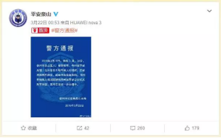 3月22日凌晨,江蘇省徐州市公安局泉山分局官方微博@平安泉山發(fā)布通報(bào)。