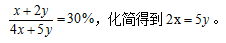 【答案】A【解析】本題已知音樂系男女人數(shù)比為1∶3,可以結(jié)合比例關(guān)系設(shè)音樂系男女人數(shù)分別為x和3x,同理,結(jié)合美術(shù)系男女生人數(shù)之比為2∶3,設(shè)美術(shù)系男女人數(shù)分別為2y和3y。由學(xué)院男生人數(shù)占總?cè)藬?shù)的30%可得等量關(guān)系