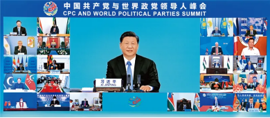 2021年7月6日,中共中央總書(shū)記、國(guó)家主席習(xí)近平在北京出席中國(guó)共產(chǎn)黨與世界政黨領(lǐng)導(dǎo)人峰會(huì)并發(fā)表主旨講話。新華社記者李響/攝