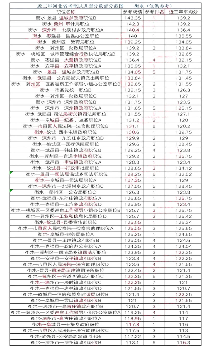 (2021省考衡水地區(qū)部分進(jìn)面分?jǐn)?shù))