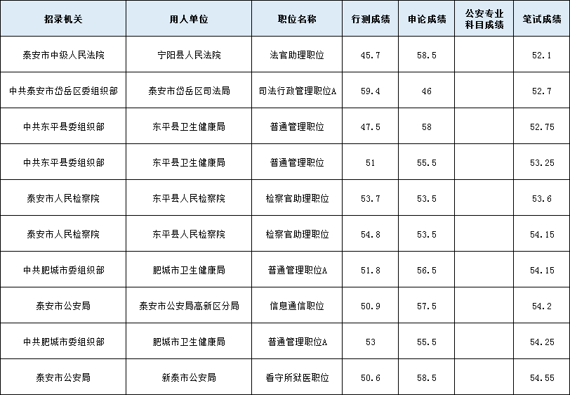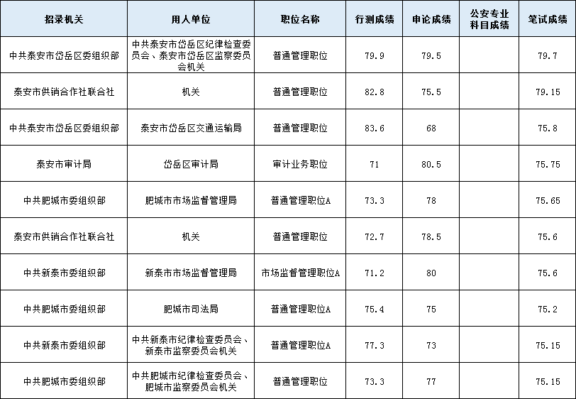 2021省考泰安進(jìn)面分?jǐn)?shù)后10崗位: