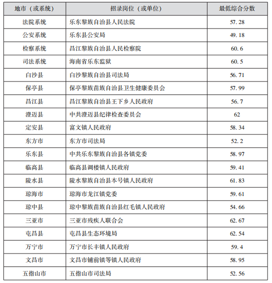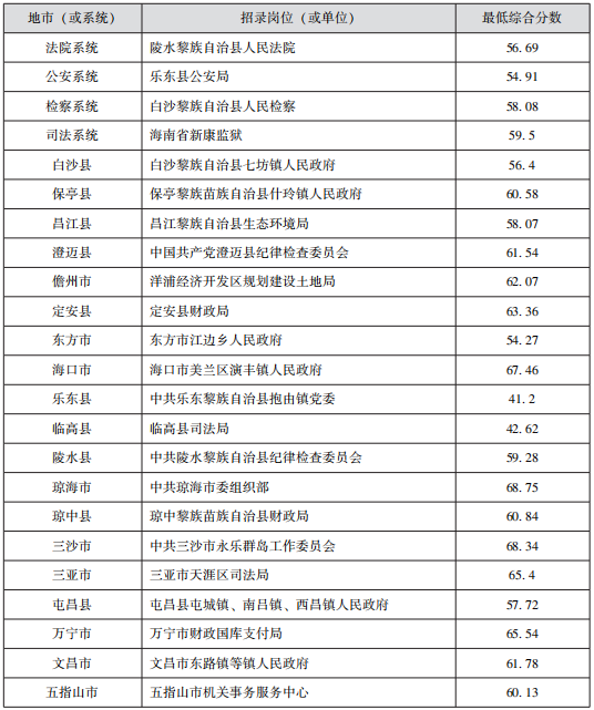 2020年海南省考最低進(jìn)面分?jǐn)?shù)情況