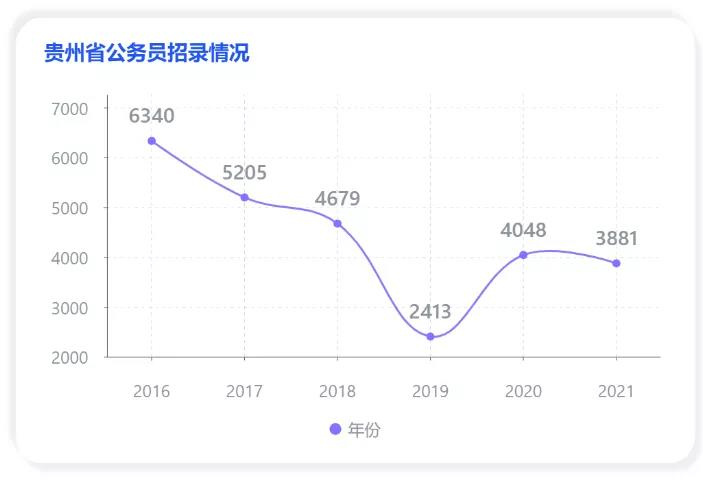 貴州省整體的省考招錄人數(shù)呈現(xiàn)下降的趨勢(shì)。除了2020年受疫情影響,為緩解就業(yè)壓力有過大幅擴(kuò)招。2021貴州公務(wù)員招錄人數(shù)相比去年縮減167人。咱們?cè)賮砜纯锤鞯厥袓徫徽袖浀淖兓?/p>