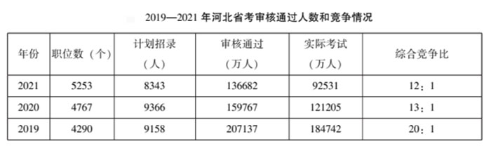 ?。?019-2021年河北省考審核通過(guò)人數(shù)和競(jìng)爭(zhēng)情況)