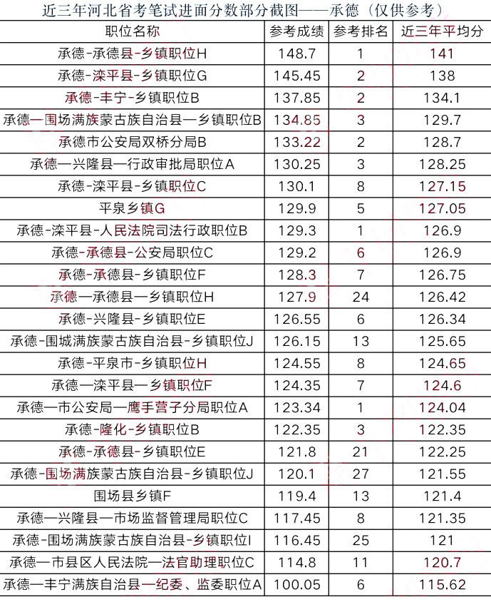 ?。?021省考承德地區(qū)部分進(jìn)面分?jǐn)?shù)為部分?jǐn)?shù)據(jù),僅供各位同學(xué)參考使用。)