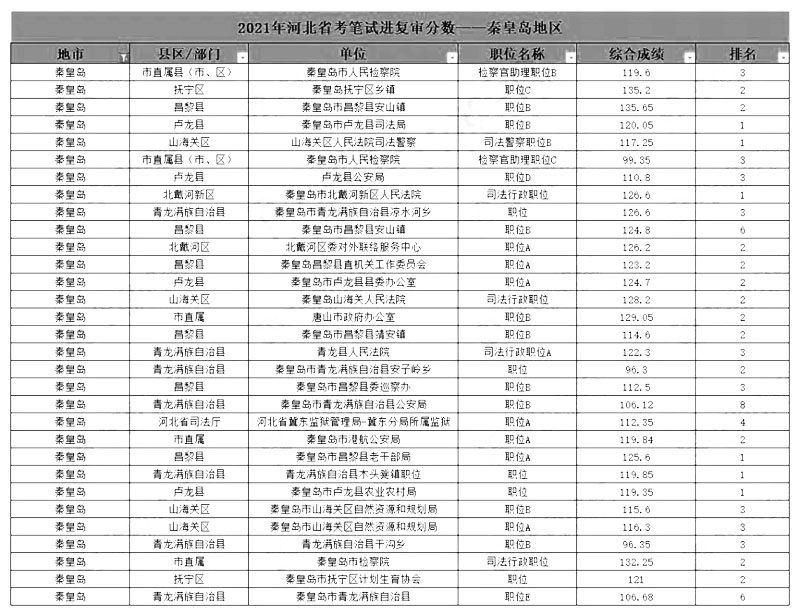 ?。?021省考秦皇島地區(qū)部分進面分?jǐn)?shù))