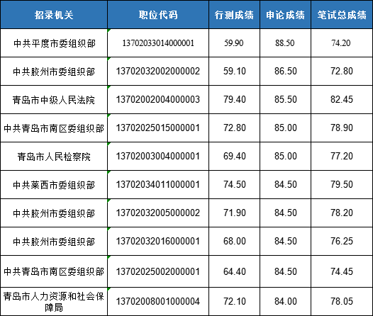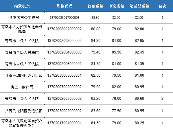 以已發(fā)布的青島面試名單為例,綜合成績最高82.9分(具體如下圖),平均進(jìn)面分?jǐn)?shù)71.09分。