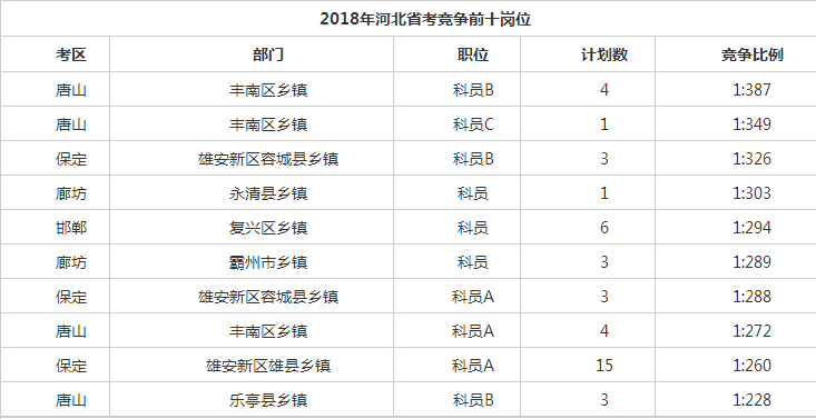 (根據(jù)2018年河北省考報(bào)名情況匯總匯整理,僅供參考)