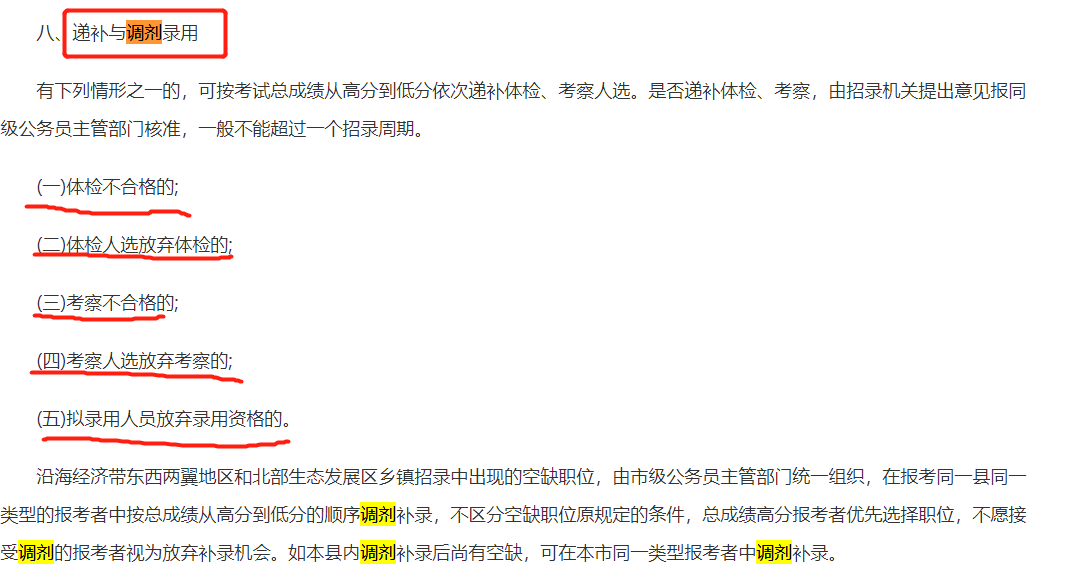 公告截圖可以看出:除了體檢不合格,放棄體檢,資審不合格,放棄資審和錄用人員放棄錄用資格能有遞補(bǔ)機(jī)會(huì)外,如有空缺職位還存在遞補(bǔ)調(diào)劑機(jī)會(huì)。