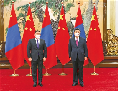 習近平強調(diào),中蒙雙方要堅持相互尊重獨立、主權(quán)、領(lǐng)土完整,相互尊重各自選擇的發(fā)展道路,相互照顧彼此核心利益,始終牢牢把握中蒙關(guān)系發(fā)展正確方向。中方愿同蒙方保持高層交往,加強治國理政經(jīng)驗交流,不斷豐富兩國關(guān)系內(nèi)涵。希望雙方落實好兩國政府聯(lián)合聲明,早出、多出實質(zhì)成果。近兩年中蒙抗疫合作可圈可點,“羊來茶往”傳為佳話,加深了兩國人民友好情誼。中方愿同蒙方繼續(xù)開展抗疫合作,為蒙方抗擊疫情、發(fā)展經(jīng)濟、改善民生提供支持和幫助。雙方要倡導真正的多邊主義,維護國際公平正義,維護地區(qū)和平穩(wěn)定。