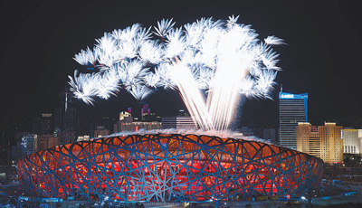 夜幕下的國家體育場華燈璀璨、美輪美奐,這座以鳥巢造型聞名于世的建筑,即將創(chuàng)造歷史,成為世界上首座舉辦過冬奧會和夏奧會“雙奧”開幕式的體育場館。