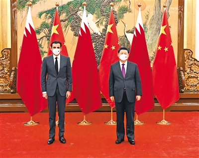 習近平強調(diào),中卡雙方要相互堅定支持。中方將一如既往支持卡方維護國家主權、獨立、安全、穩(wěn)定,支持卡方自主探索符合本國國情的發(fā)展道路。中方支持卡方推進“2030國家愿景”建設,愿同卡方就共建“一帶一路”、落實全球發(fā)展倡議開展合作,拓展能源、基礎設施建設等領域務實合作,構筑長期穩(wěn)定的能源合作關系,鼓勵更多中國企業(yè)赴卡塔爾投資興業(yè),積極參與卡塔爾基礎設施建設和自由區(qū)建設。歡迎卡方加大對華投資。雙方要深化反恐等領域合作,增進人文交流。中方支持卡塔爾舉辦2022年卡塔爾世界杯和2030年亞運會,愿同卡方啟動中東地區(qū)首例大熊貓合作。希望卡方繼續(xù)發(fā)揮積極作用,推動盡快達成中國—海灣阿拉伯國家合作委員會自由貿(mào)易協(xié)定。