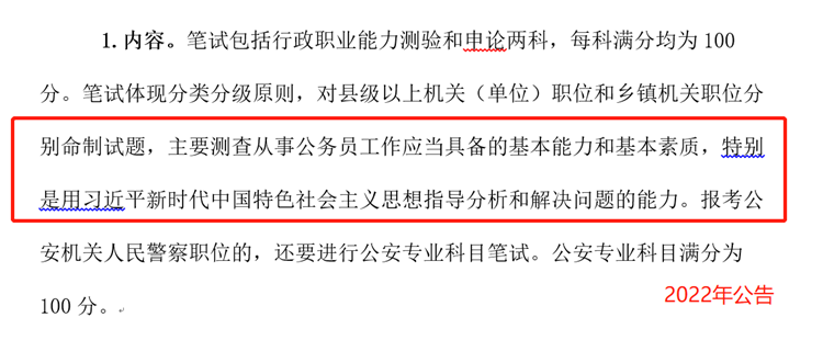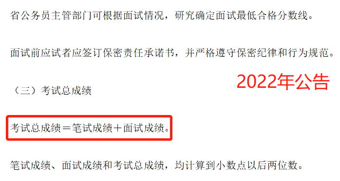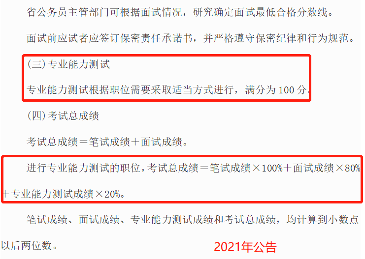 2022年的公告中未單獨(dú)提及專業(yè)能力測(cè)試的的分?jǐn)?shù)和對(duì)應(yīng)崗位的總成績(jī)核算方法,所以涉及專業(yè)能力測(cè)試的考生要參考2021年的分?jǐn)?shù)計(jì)算方式進(jìn)行備考。