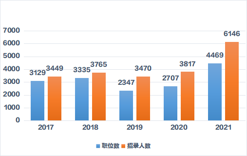 近五年省考招錄人數(shù)整體呈上升趨勢,2021年云南省考公告招錄人數(shù)與2020年相比,由3817人增加至6146人,擴(kuò)招61%,如果今年仍然有擴(kuò)招趨勢,無疑增加了廣大考生的錄取幾率。