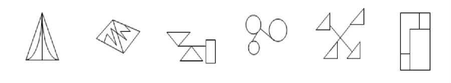 例題:把下面的六個(gè)圖形分為兩類,使每一類圖形都有各自的共同特征或規(guī)律,分類正確的一項(xiàng)是: