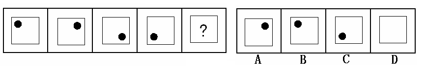 ?。ù鸢福築。黑點(diǎn)在正方形中順時(shí)針移動(dòng)。在第5個(gè)圖形中,應(yīng)該正好移動(dòng)到左上角。)