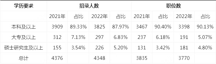 二、專科學(xué)歷可報(bào)考 九成以上職位要求本科學(xué)歷