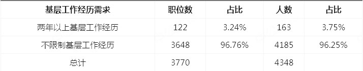 2022山西省考對(duì)工作經(jīng)歷要求比較寬松,本次招考有96.76%名額、96.25%的職位對(duì)工作經(jīng)歷無要求,此外還有1470人、1272個(gè)職位僅限應(yīng)屆畢業(yè)生報(bào)考,這些職位為應(yīng)屆生參加2022山西公務(wù)員考試大開綠燈,為應(yīng)屆生在就業(yè)選擇方面提供了更多機(jī)遇。