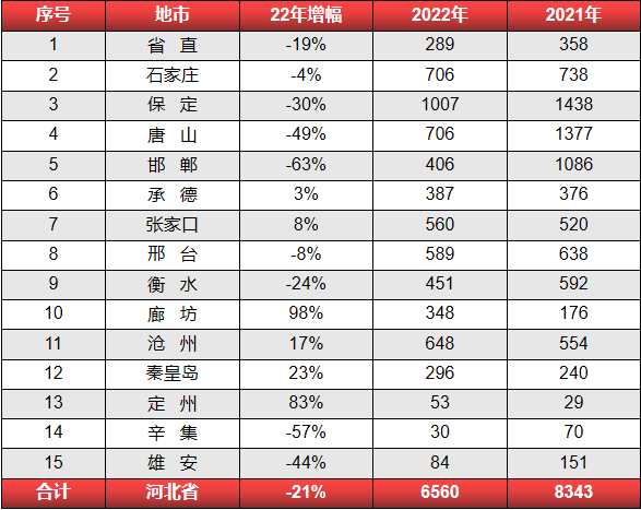 2022 年河北省公務(wù)員招錄6560人,與2021年8343人相比,同比降低21%。其中,招錄人數(shù)超1000人的地市由去年的三個減為僅有保定一個。與2021年相比,降幅較大的城市有邯鄲、唐山、保定、辛集,降幅分別是63%、49%、30%、57%。而廊坊、定州等也有較大增幅,98%及83%。