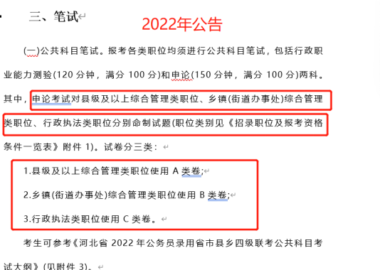 在2022河北省考職位表中,最后一欄新增了申論試卷類型,分為A/B/C卷,大家可以依據(jù)自己報考的崗位,有針對性的進行申論的學習。