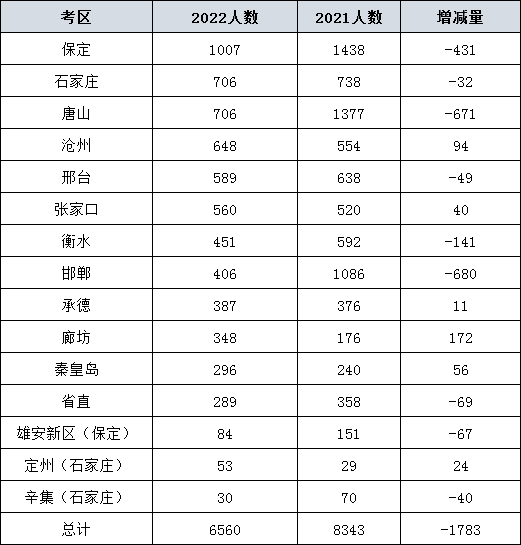 2021年、2022年河北省考各地區(qū)招錄人數(shù)對(duì)比
