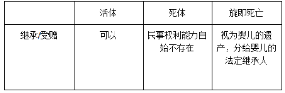 胎兒是否可以接受贈予和繼承一直是事業(yè)單位考試的常規(guī)考點,其分為三種情況,即活體、死體和旋即死亡,處理方式如下表: