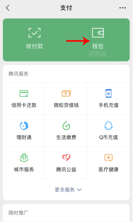 第二步:進(jìn)入支付菜單主界面后,選擇“錢包”功能。