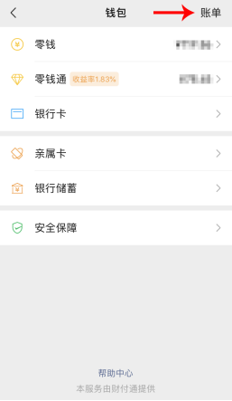 第三步:在錢包功能主界面,選擇頂部的“賬單”功能。