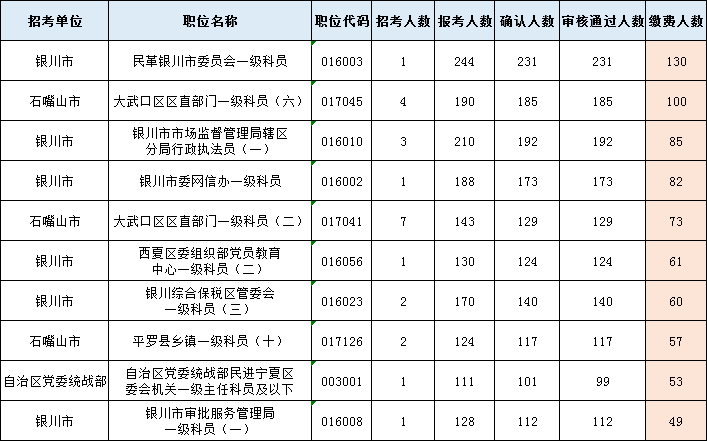 以下為繳費(fèi)人數(shù)最多的前十崗位