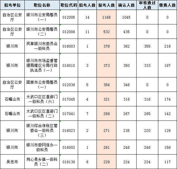 2022年寧夏公務(wù)員考試報(bào)名數(shù)據(jù)(2月28日10:00)