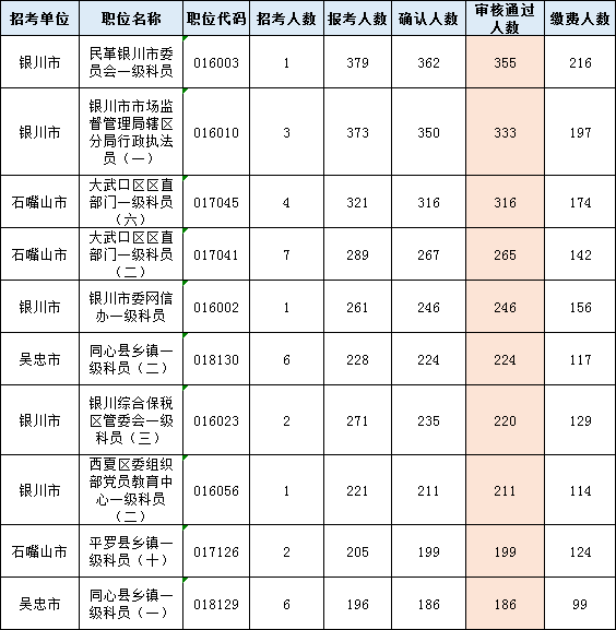 以下為審核通過(guò)人數(shù)最多的前十崗位